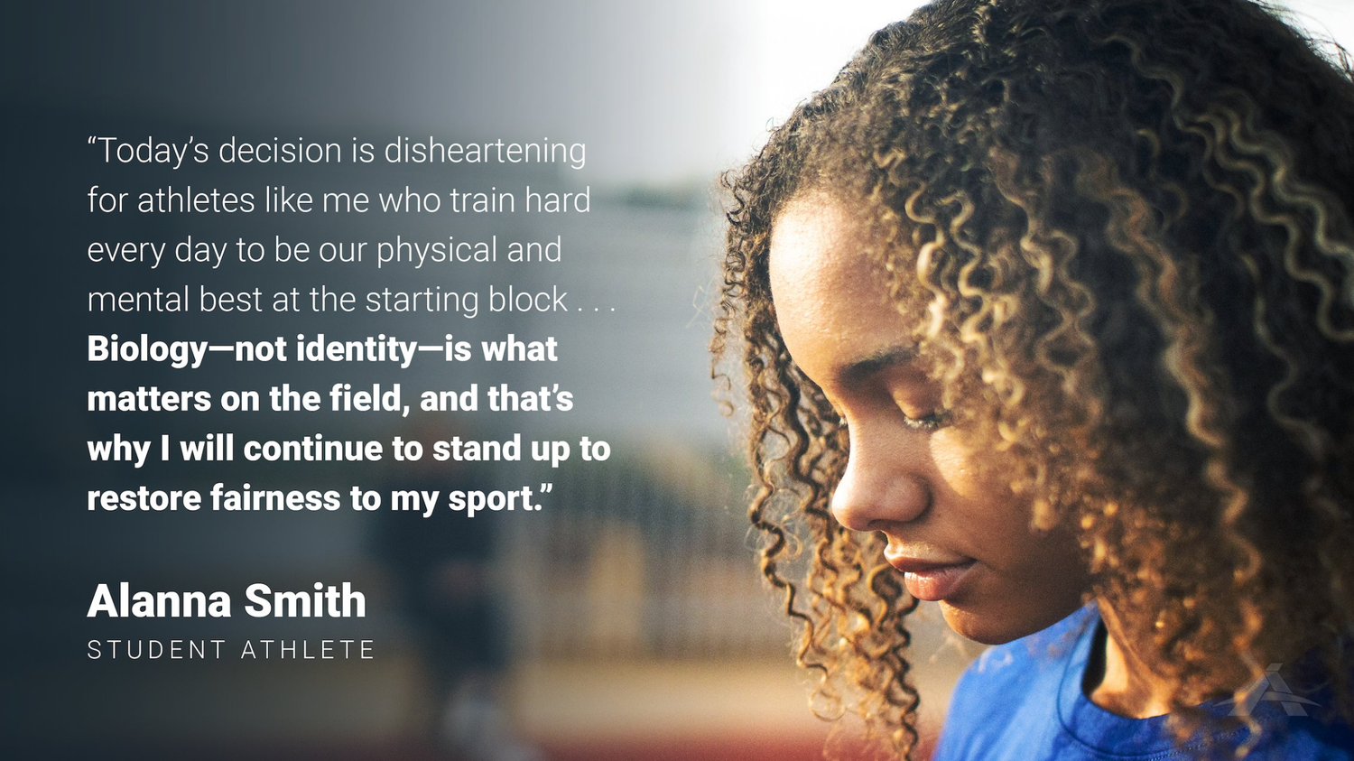 Selina Soule was one of the young women who lost opportunities to these young men. At 16 she missed qualifying for the 55-meter in the New England Regionals by two spots. Two of those spots were taken by Miller and Yearwood. In 2019, with the help of Alliance Defending Freedom, she filed a federal complaint. She was joined by three more female athletes who had also lost opportunities — Alanna Smith, Chelsea Mitchell, and Ashley Nicoletti.
