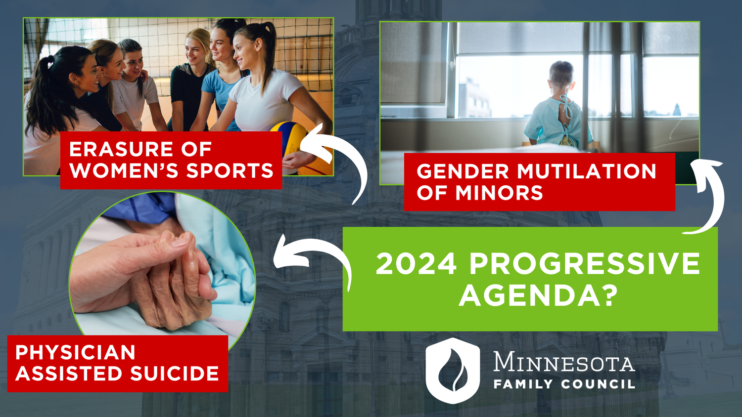 Due to a small progressive majority in the Minnesota House and Senate, we can expect dangerous pushes for physician-assisted suicide, mutilation of children through so-called “gender-affirming healthcare,” and the erasure of women’s sports. That’s why our policy team is already tracking the bills that progressive legislators will likely try to pass starting this February.
